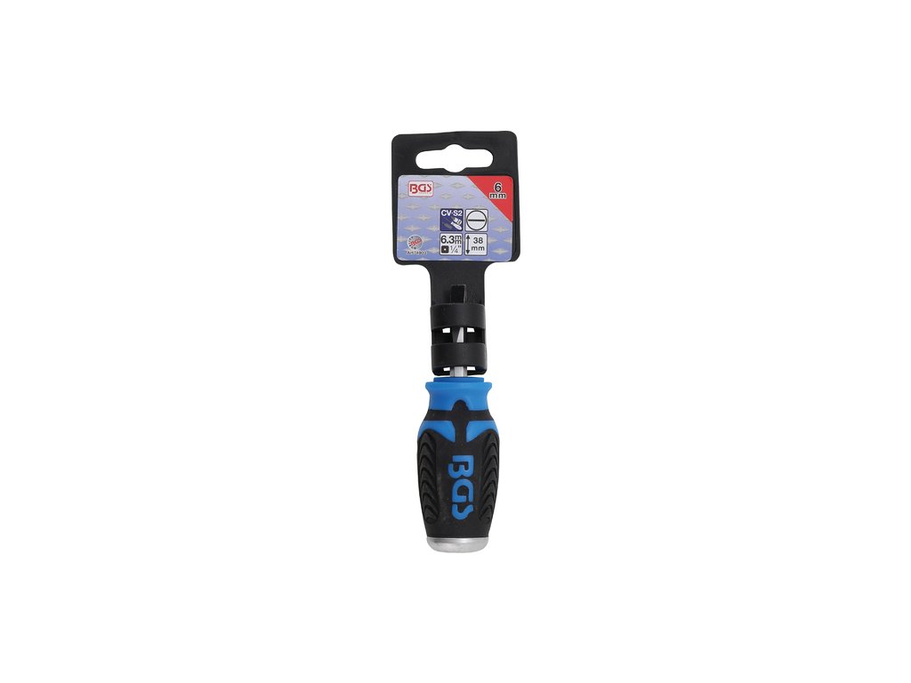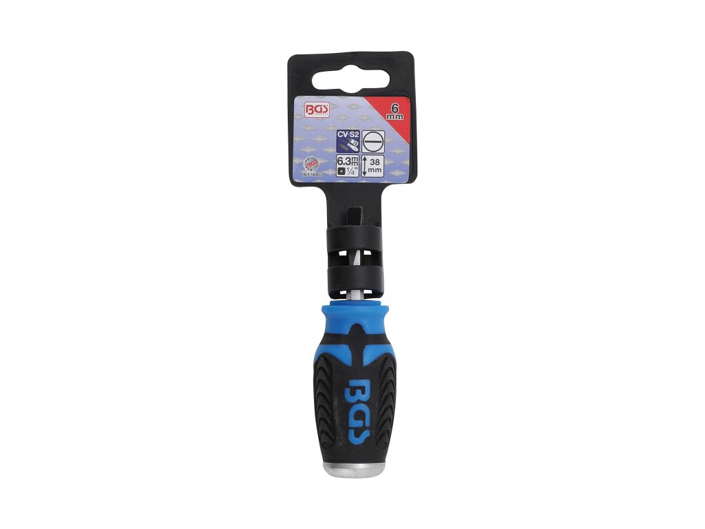 Šroubovák plochý 6 x 38 mm, 6hranný dřík, s vodicím 4hranem 1/4" - BGS 4903