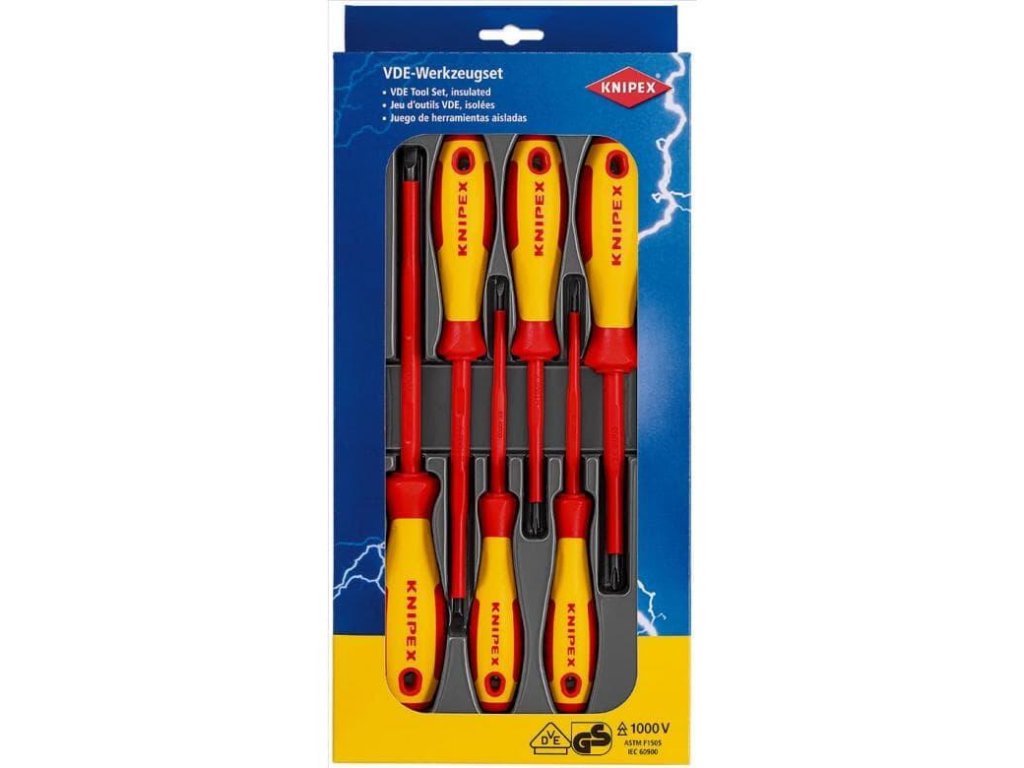 Šestidílná sada elektrikářských šroubováků v křížovém a plochém provedení, testováno pro VDE 1000 V – Knipex 00 20 12 V01