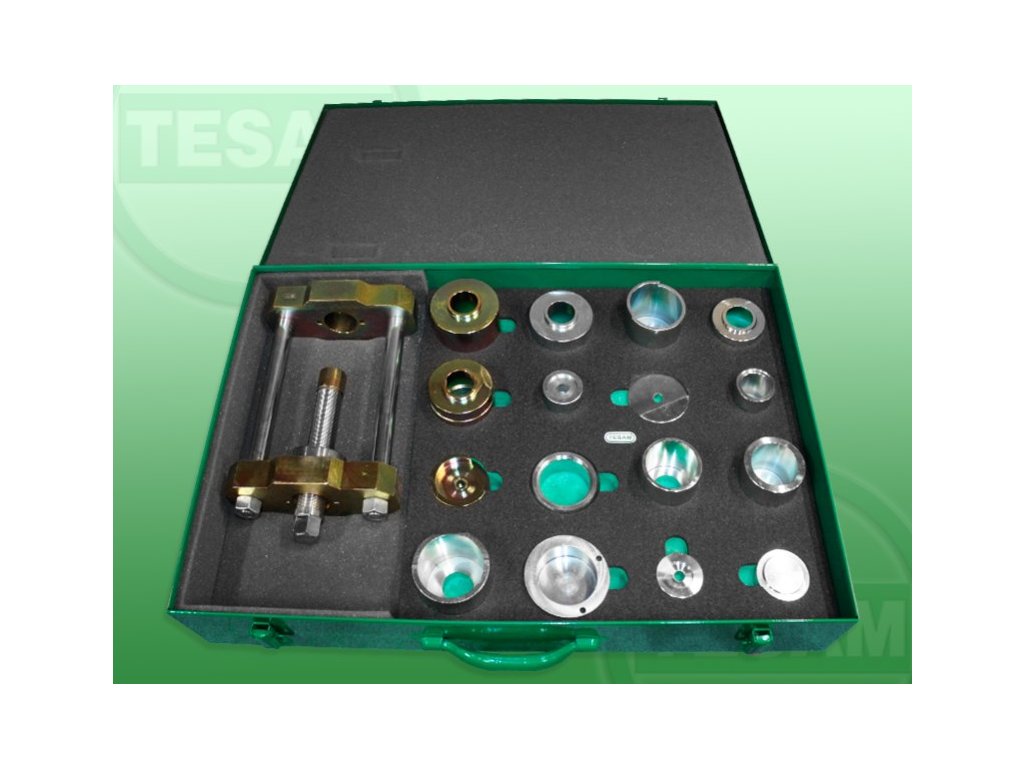 Stahovák kulových čepů – sada příslušenství na montáž a demontáž (vlisování a vylisování) čepů bez demontáže ramene, v plechovém kufru – TESAM TS311
