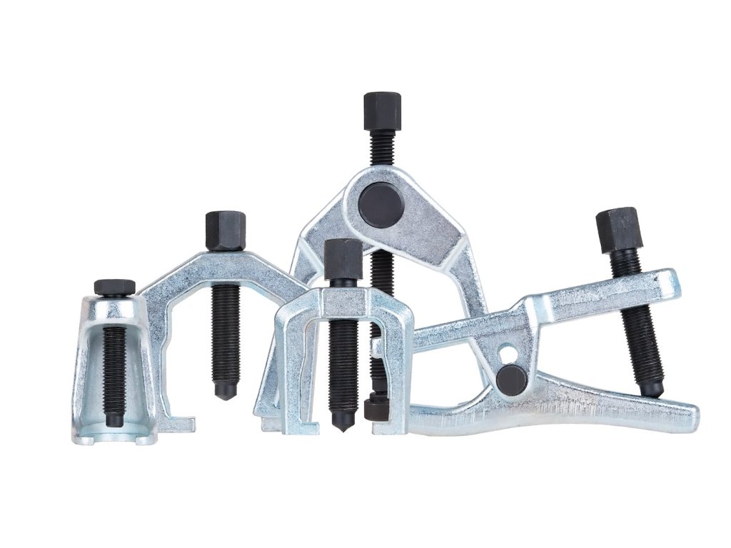 5 různých stahováků přizpůsobených pro práci s kulovými čepy a čepy různých rozměrů.