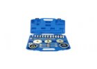 Přípravek na lisování a vytahování ložisek, univerzální sada: 5× závitnice (M10-M18), 20× lisovací pouzdra (34-82 mm), v plastovém kufru – QUATROS QS80092A. Souprava na...