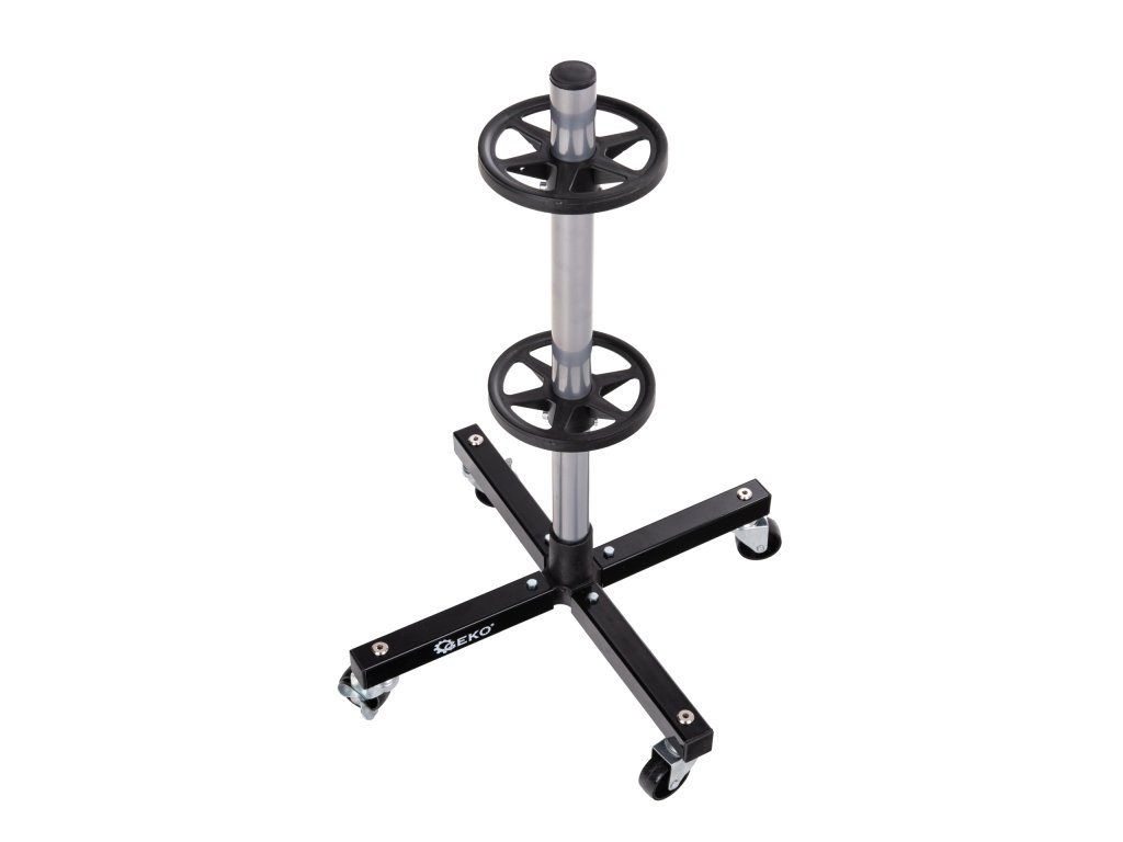 Praktický stojan pro automobilové dílny, garáže a automobilové nadšence, kteří potřebují pohodlné a stabilní místo pro uložení a údržbu kol vozidel. S přiloženými kolečky, včetně dvou s brzdou, se nářadí stává snadno přemístitelným, což usnadňuje jeho použití a manévrovatelnost i v omezených prostorech.