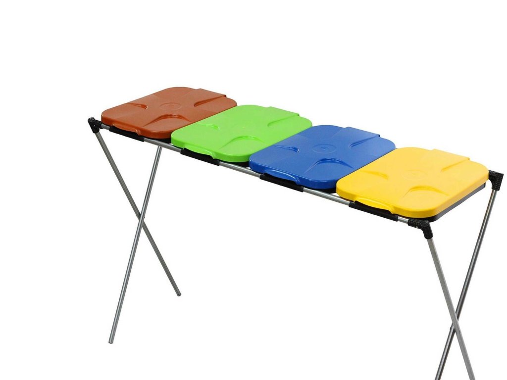 Praktický stojan na uchycení čtyř odpadkových pytlů naráz se hodí pro místa s mimořádně velkou produkcí odpadu (servisy, dílny, průmysl, ale i venkovní slavnosti apod.).