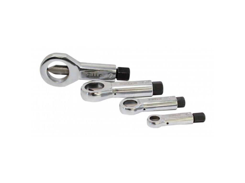 Sada 4 střihačů, tzv. „trháků“ na poškozené nebo zkorodované matice, 9-36 mm – SATRA S-1024.