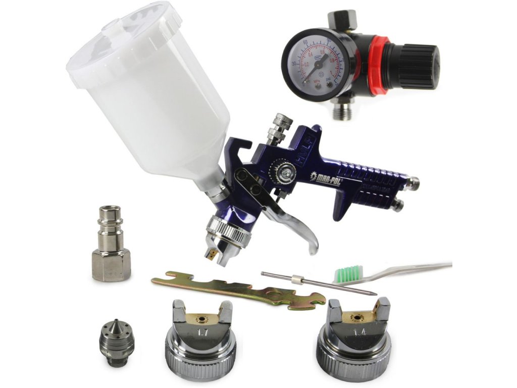 Stříkací pistole HVLP s manometrem, nádobkou 0,6l a tryskami MAR-POL