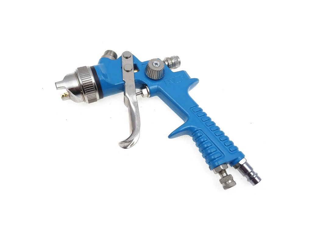 Stříkací pistole s horní nádobkou disponuje možností plynulé regulace nanášené barvy a přívodního vzduchu, umožňuje tak redukovat spotřebu a díky tomu je pracovní prostředí zdravější a nanášení barvy hospodárnější. Těchto předností je dosaženo díky systému „HVLP“ – velký objem vzduchu při nízkém tlaku, který umožňuje barvení při konstantním tlaku a objemu vzduchu. Vzduchová stříkací pistole 120ml umožňuje využití horizontálního, vertikálního či kruhového stříkacího rozptylu pouhým přetočením trysky, čímž se barva nedostane kam nemá.