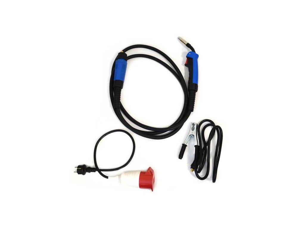 Hořák - 3m, zemnící kabel - 2m, náhradní kryt (hubice) - 1ks, průvlak - 2ks