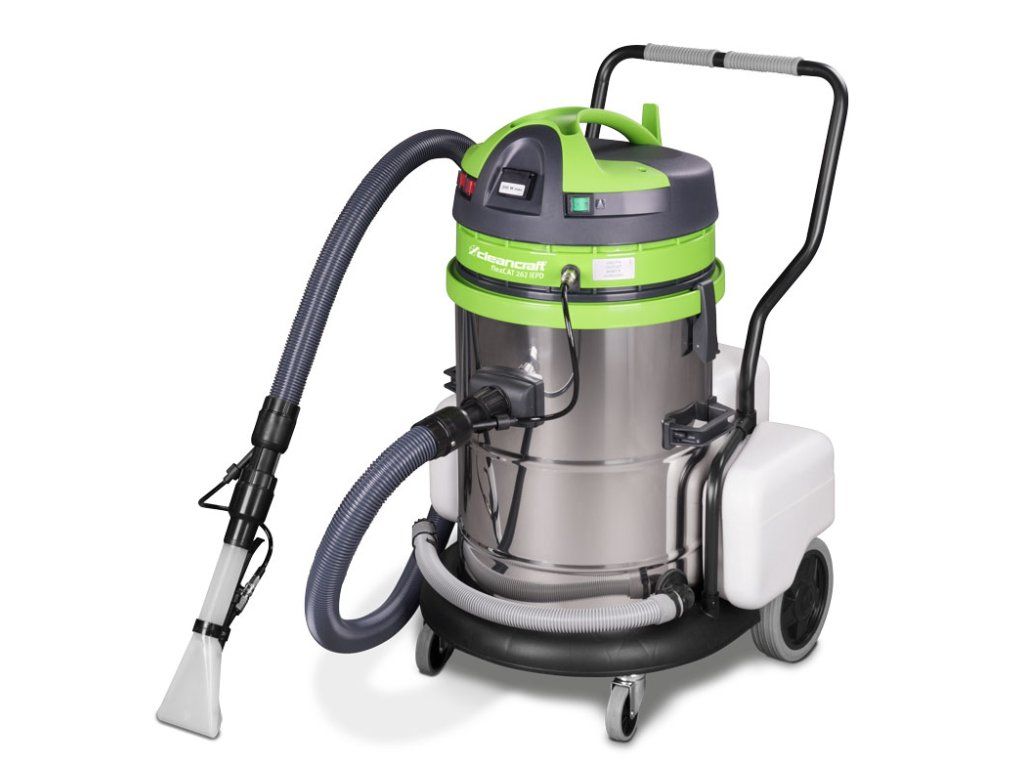 Speciální vysavač s nádrží na čisticí prostředek a polštářovou hubicí, vhodný pro čištění sedáků.