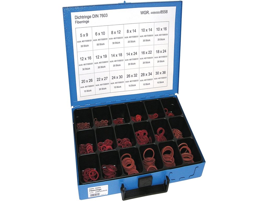 Těsnicí kroužky vulkanfíbrové DIN 7603 6x10-30x36, sada 435 ks v kufru