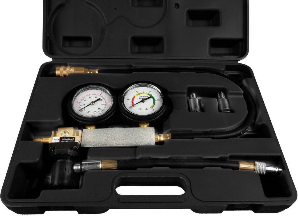 Tester, který umožňuje rychle a snadno diagnostikovat netěsnosti ve spalovací komoře. Umožňuje zkontrolovat stupeň opotřebení motoru dodáním stlačeného vzduchu do válce a stanovením procentuálního poklesu tlaku způsobeného netěsnostmi válce.