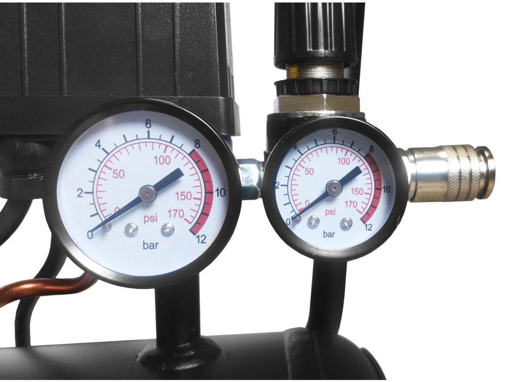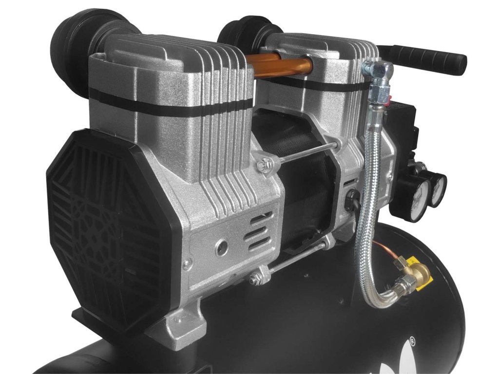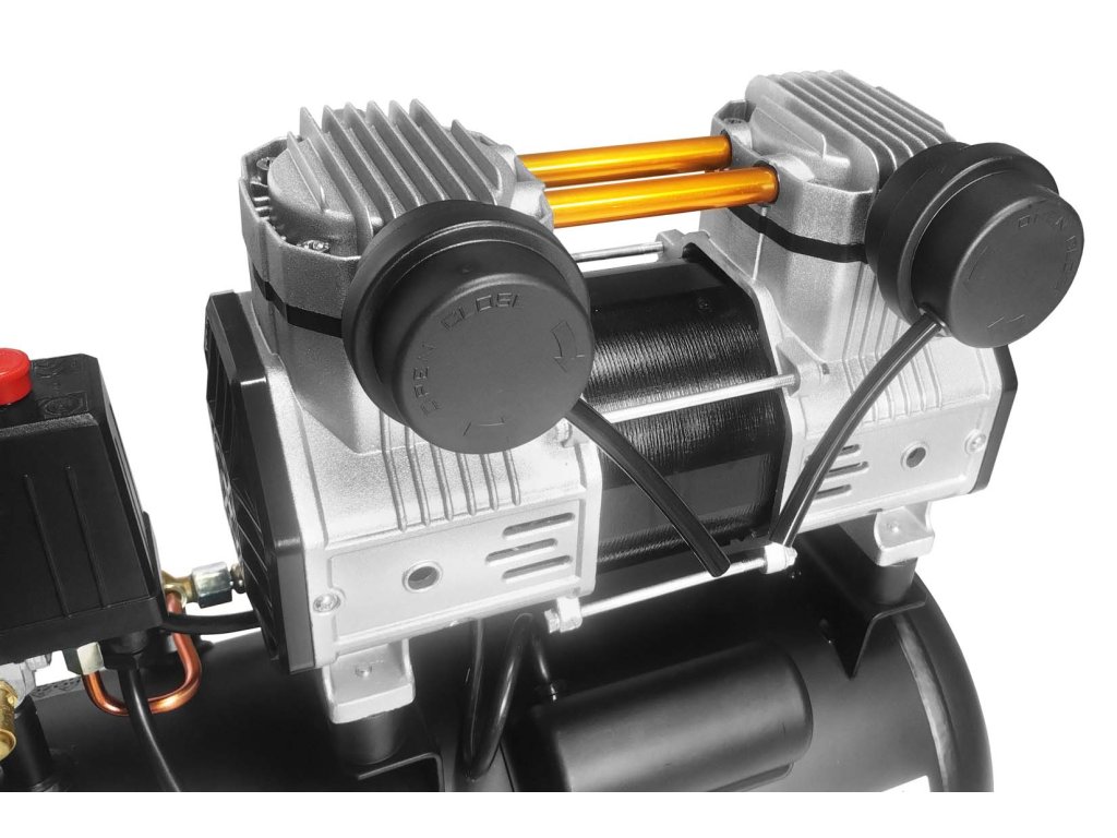 Bezolejový kompresor, pojízdný, tichý, kapacita 24 l, maximální tlak 8 bar, výkon 1,5 kW( 2HP) - TUSON