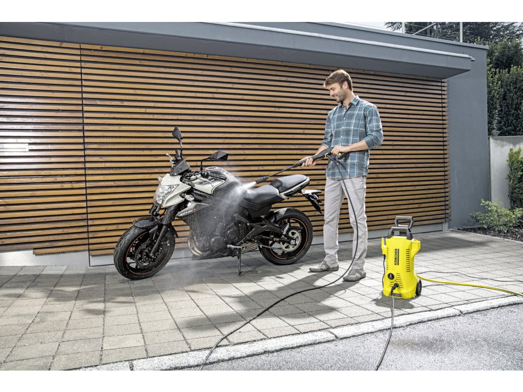 S tlakovou myčkou K 2 Power Control odstraníte usazenou špínu z terasy i nánosy nečistot z jízdního kola, zahradního nábytku nebo nářadí. Výkonný motor o příkonu 1400 W vytvoří silný proud vody o teplotě až 40 °C.
