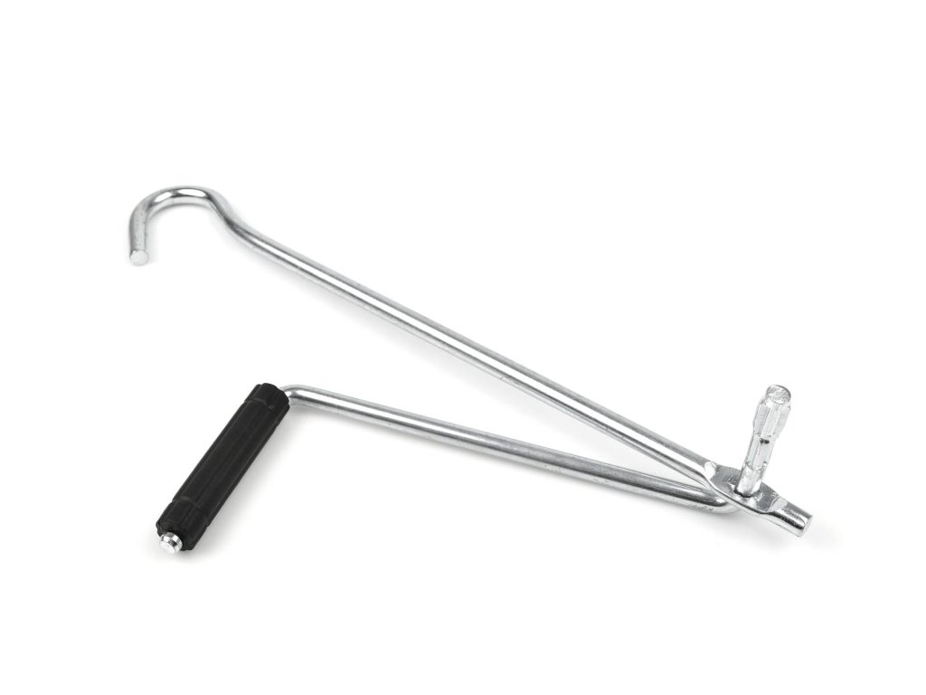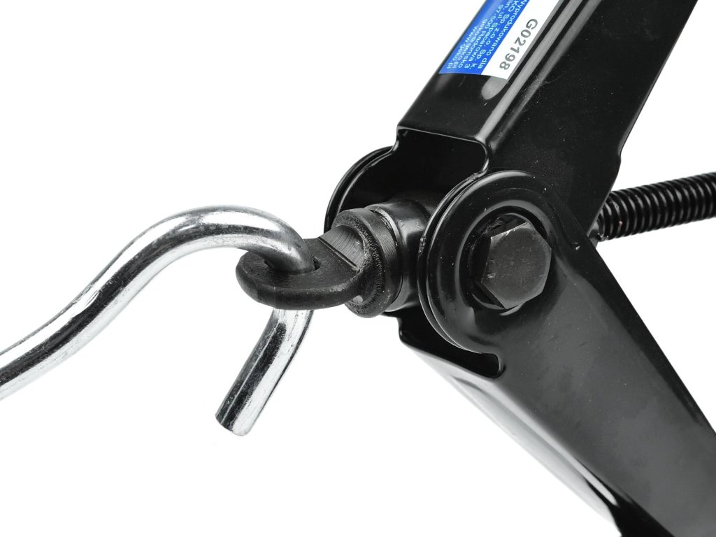 Snadno se ovládá pomocí skládací kličky, hlava se zdvihacím bodem je otočná a vybavená gumovou ochranou zabraňující poškození zvedaného auta (např. jeho prahů nebo zvedacích míst na podvozku).