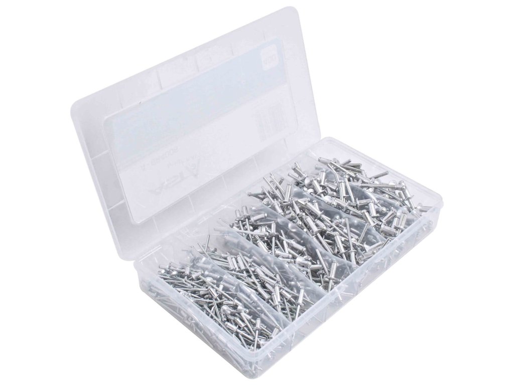 Trhací nýty s plochou hlavou, hliníkovo-ocelové, různé rozměry, sada 400 kusů v plastové krabičce – ASTA A-BR400S