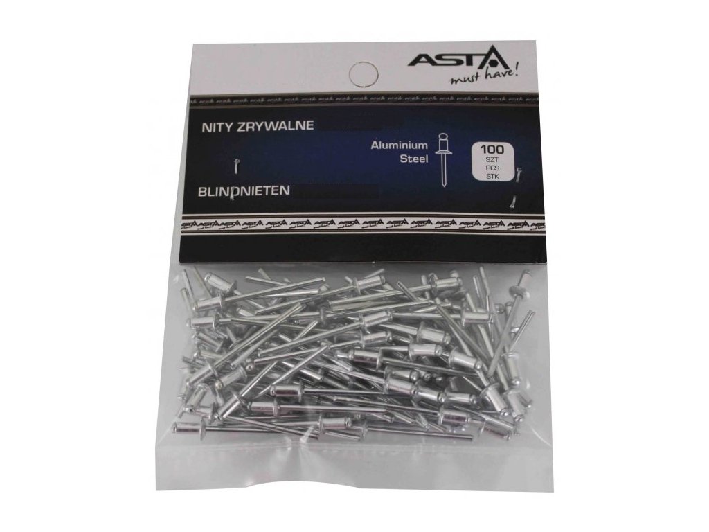 Trhací nýty hliník-ocel, různé rozměry, s plochou hlavou, balení 100 ks - ASTA