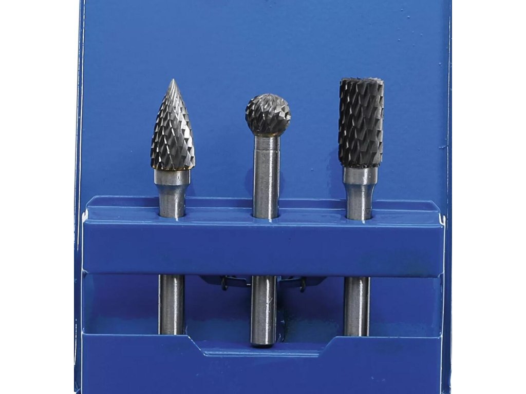 Nástavce na frézování kovů, různé tvary, tvrdokov s karbidem, sada 3 kusy v plechové krabičce – BGS technic 111
