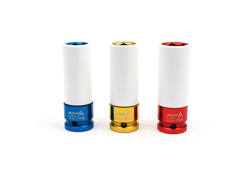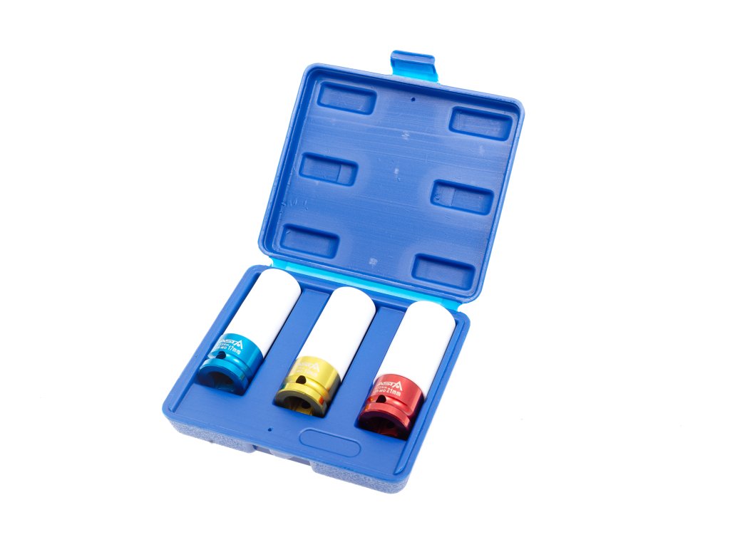 Sada 3 kusů nástrčných úderových hlavic na šrouby kol – ráfků – ASTA 914003A