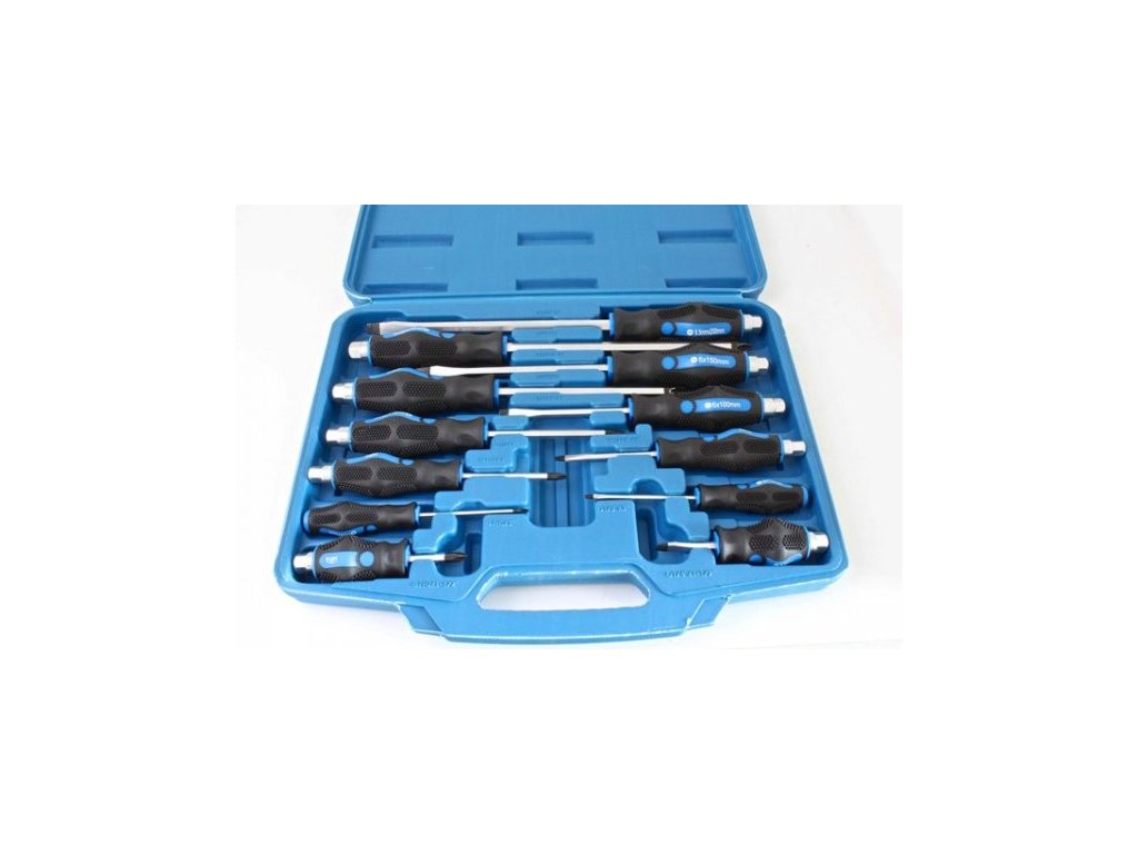 Ploché a křížové profi úderové šroubováky, různé rozměry, souprava 12 kusů v plastovém kufru – SATRA S-S12PC