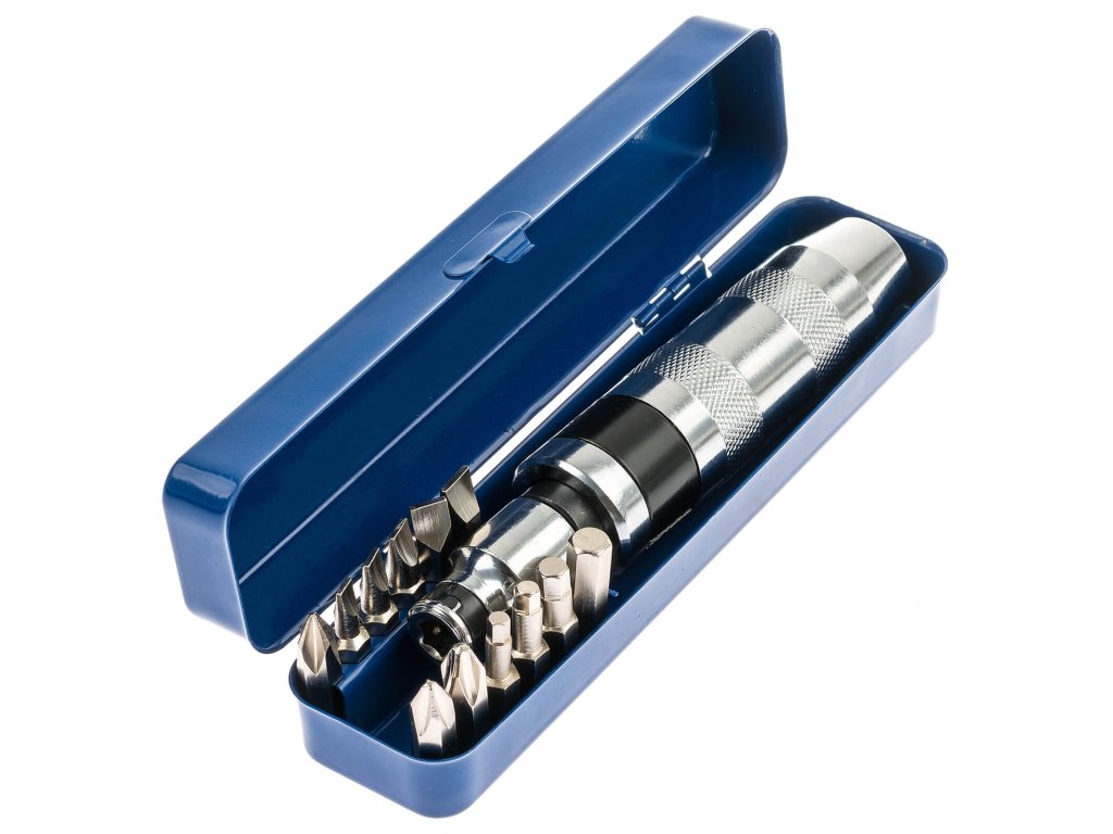 Sada je dodávána v plechové krabičce s uložením pro jednotlivé bity.