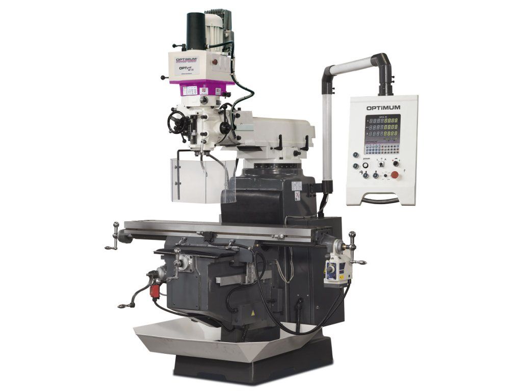 Univerzální vrtačko-frézka v masivním provedení pro profesionální použití. Plynulá regulace otáček pomocí frekvenčního měniče (Made in Germany) a digitální odměřování polohy DPA 21.