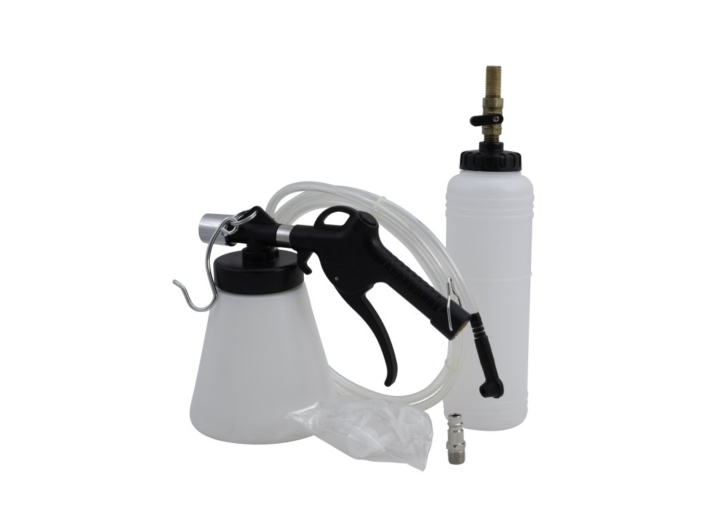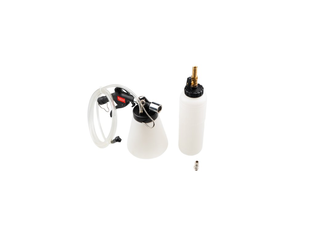 Univerzální vakuový přípravek ke snadnému odvzdušnění brzd, výměně brzdové kapaliny v brzdovém okruhu nebo hydraulické spojce. Díky pneumaticky vytvořenému podtlaku lze tuto práci provést v jednom člověku („práce jednoho mechanika“), není třeba pomocníka, který bude manuálně tlakovat brzdovým pedálem.
