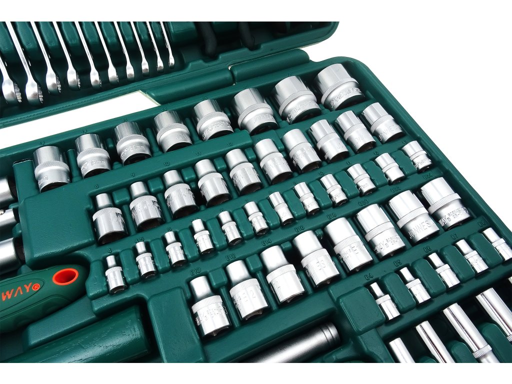 Profesionální velká „golovka” – obsahuje základní dílenské nářadí a vybavení, bez kterého se žádný mechanik neobejde. Svým nebývalým rozsahem – 127 kusů nářadí v jednom kufru – je vhodná pro profesionální i hobby uživatele. Všechny součásti sady jsou v prvotřídní kvalitě.