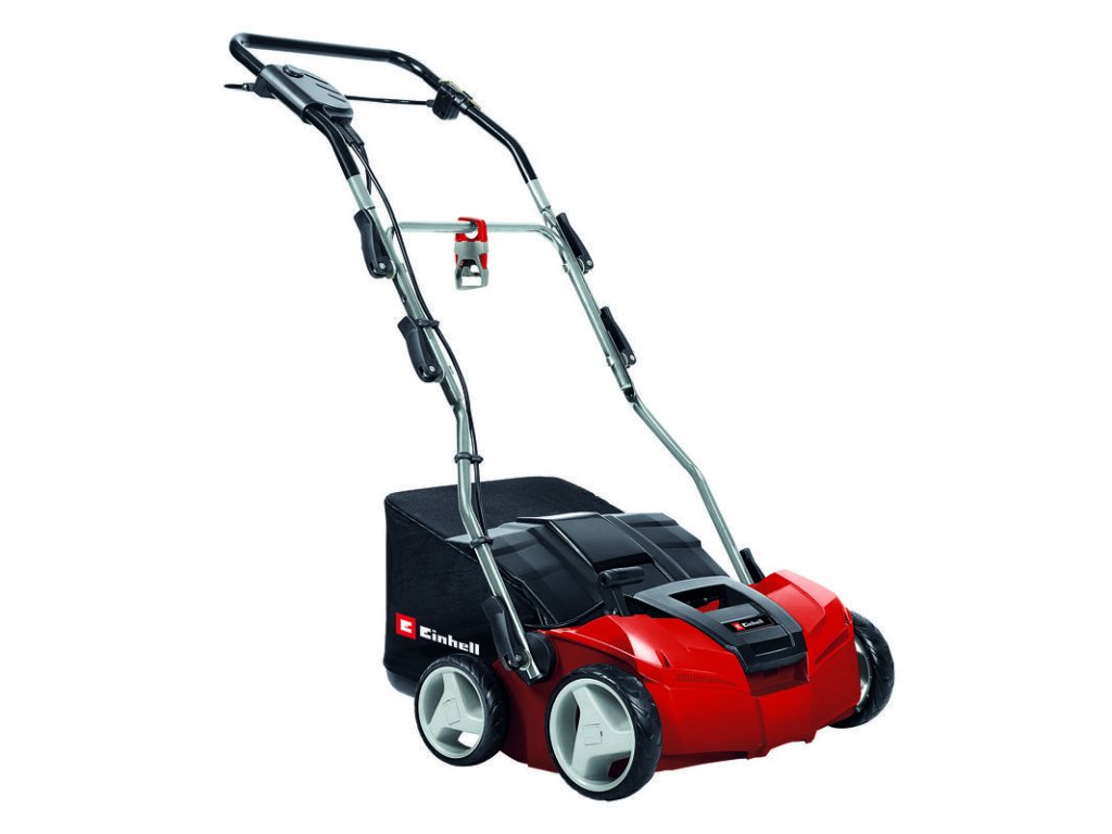 Elektrický kombinovaný vertikutátor a provzdušňovač trávníků, výkon 1400 W, 3stupňové nastavení pracovní hloubky, koš 28 litrů, pro plochy do cca 500 m2 – Einhell Expert GE-SA 1435
