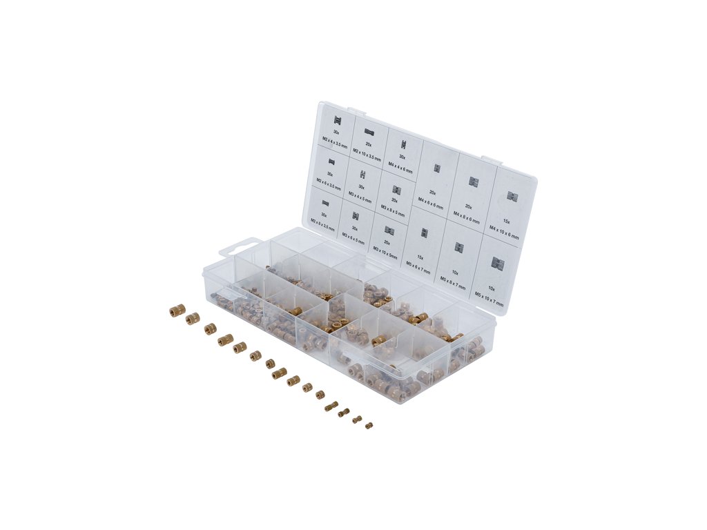Vkládací – lisovací matice, mosazné, metrický závit, sada 330 ks – BGS technic 85223.