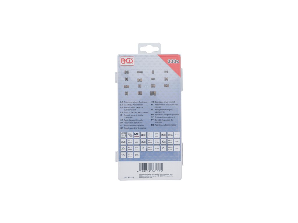 Vkládací – lisovací matice, mosazné, metrický závit, sada 330 ks – BGS technic 85223.