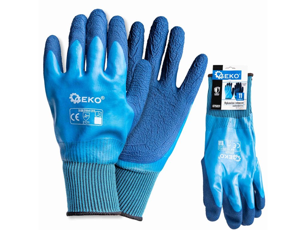 Profesionální pracovní rukavice navržené pro maximální pohodlí a ochranu, zejména při náročných pracovních podmínkách. Jsou vyrobeny z odolné směsi polyesteru a latexu a poskytují bezkonkurenční odolnost proti vodě, díky čemuž jsou ideální pro použití ve vlhkém a mokrém prostředí.