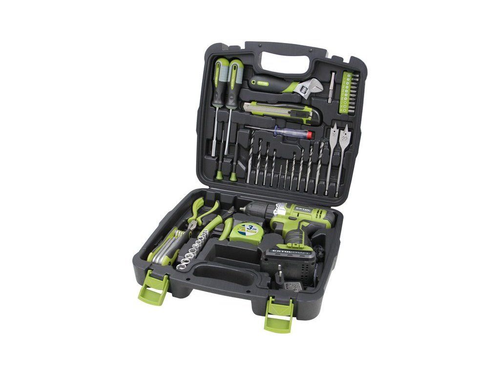 Praktická sada pro domácnost obsahující aku vrtací šroubovák s vrtáky a bity a základní nářadí. Lehký vrtací akušroubovák je určen k dotahování a povolování šroubů či vrutů, dále k vrtání do dřeva, kovu a plastů.