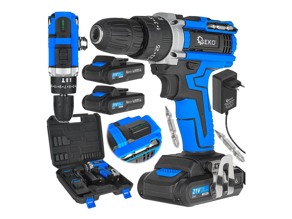 Vrtačka/ šroubovák s funkcí příklepu 21V 2x 2ah baterie - GEKO