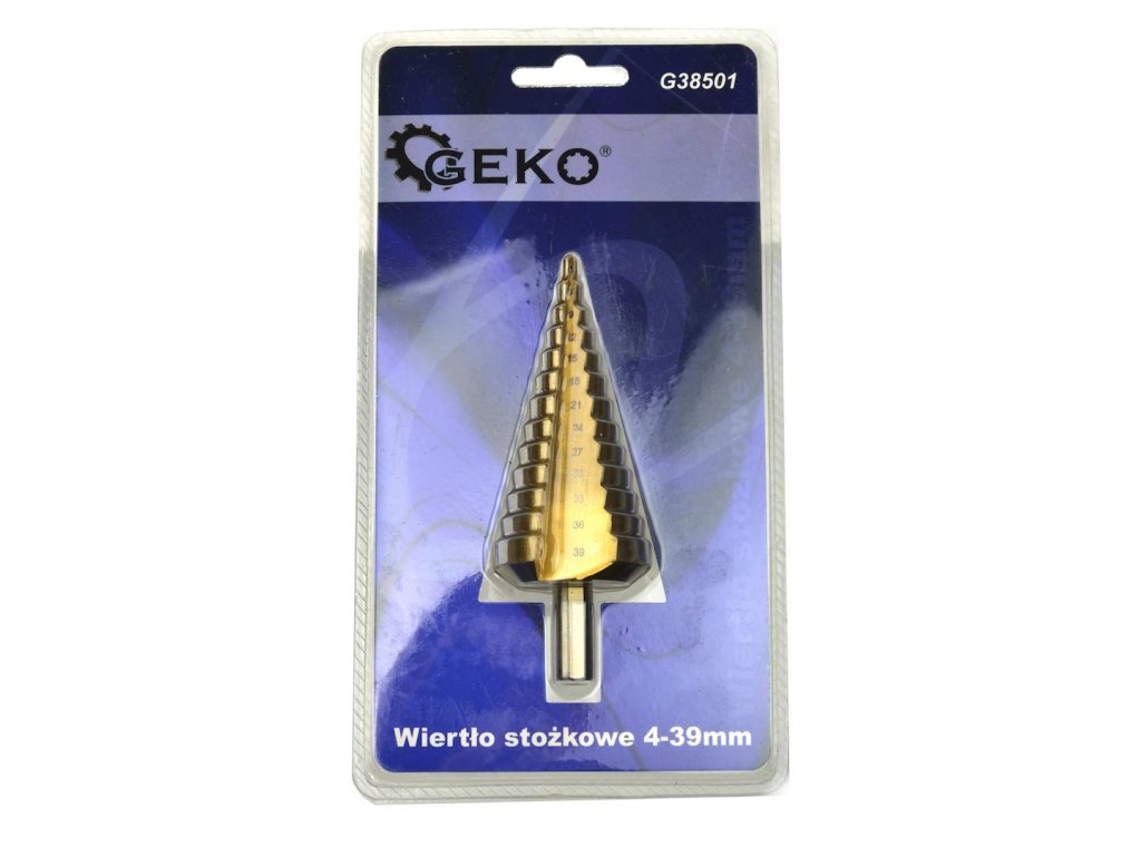 Vrták stupňovitý, 4-39mm, stupňování po 3mm, 13 otvorů, stopka 13mm, TiN - GEKO