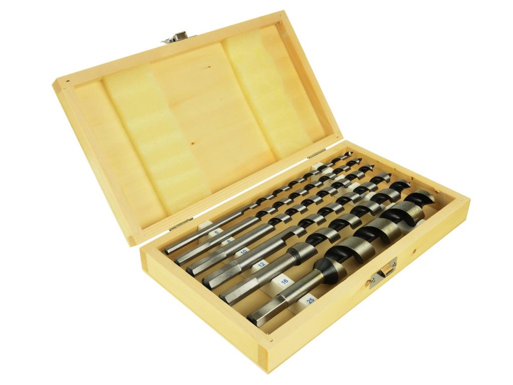 Vrtáky hadovité do dřeva, sada 6ks, 6-25mm, délka 230mm, v dřevěné kazetě - GEKO