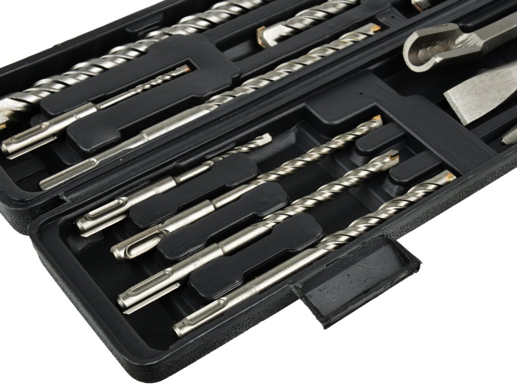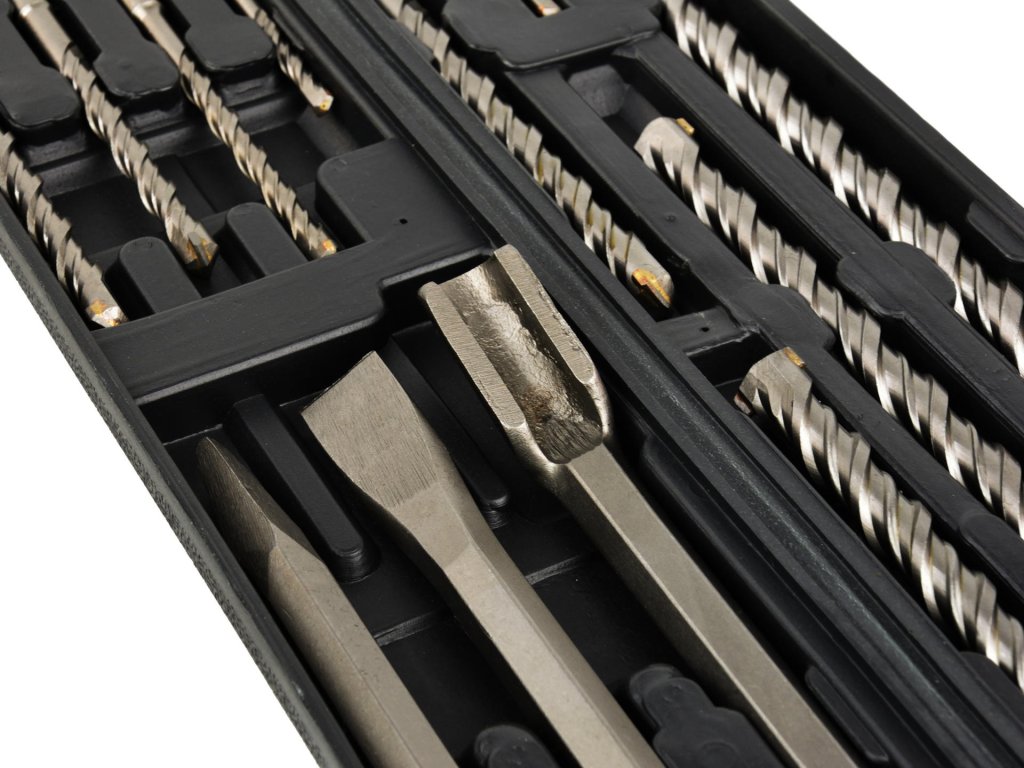Vrtáky a sekáče pro použití ve zdivu, betonu, žule a jiných kamenech. Speciálně tvarovaná vložka pro delší životnost, vysoká účinnost, přesnost centrické vrtání a snížení zatížení.Sada obsahuje: