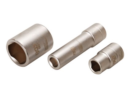 Nástrčné hlavice (klíče) na montáž a demontáž vstřikovacích čerpadel BOSCH značky BGS 8827 Sada 3 kusů obsahuje: 1x 3stranná hlavice na povolení šroubu čerpadla Bosch, rozměr...