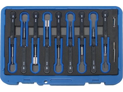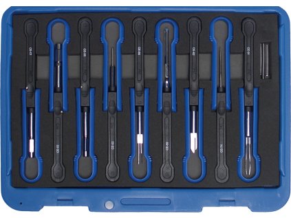 Sada vypichováků na demontáž konektorů v elektroinstalaci vozidla, 23 dílů v plastovém kufru – Genborx VT13009 Souprava vypichováků s „vidličkami“ různých tvarů je použitelná...