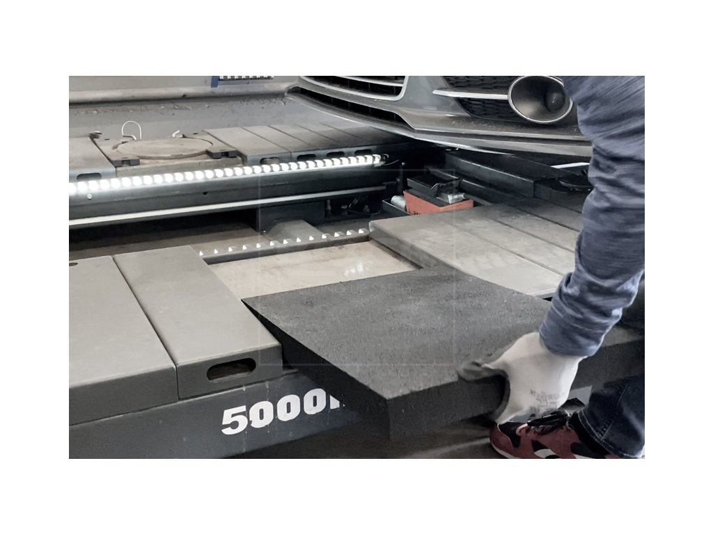 Speciální podložka pro vyplnění mezery v rampě zvedáku po točnici pro geometrii náprav. Snadno se montuje – díky vysoké hmotnosti drží na místě a není třeba ji jakkoliv dále upevňovat. Velké úchyty usnadňují manipulaci.