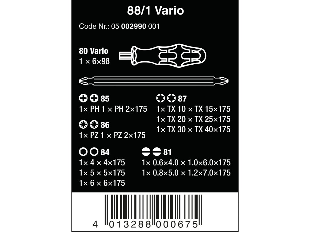Wera 002990 11 dílná sada šroubováků plochý/křížový/torx Vario 88/1
