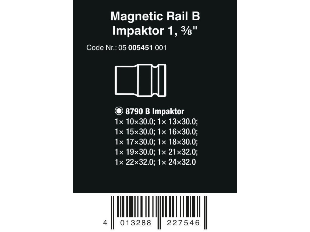 Wera 005451 Nástrčné hlavice 3/8 šestihran 10 ÷ 24 mm Impaktor 1, Typ 9607 na liště (Sada