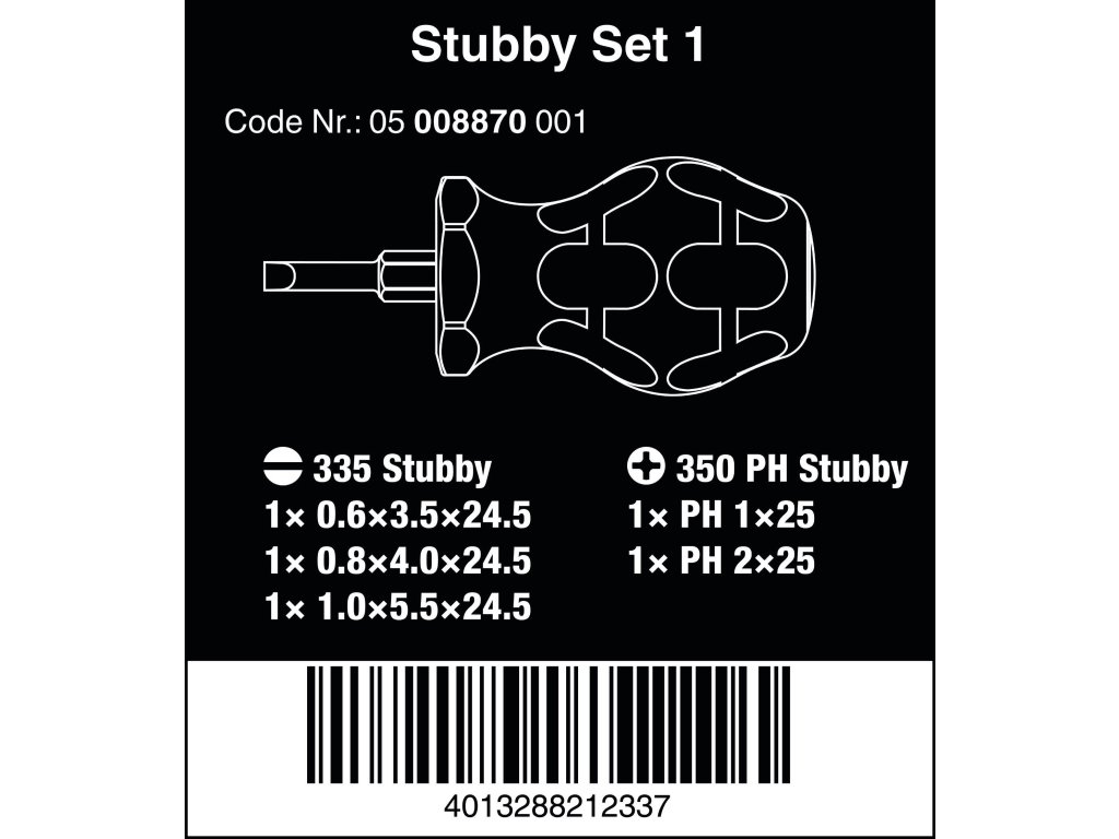 Wera 008870 Držák bitů a šroubováků Stubby Set 1 Sada 5 dílů