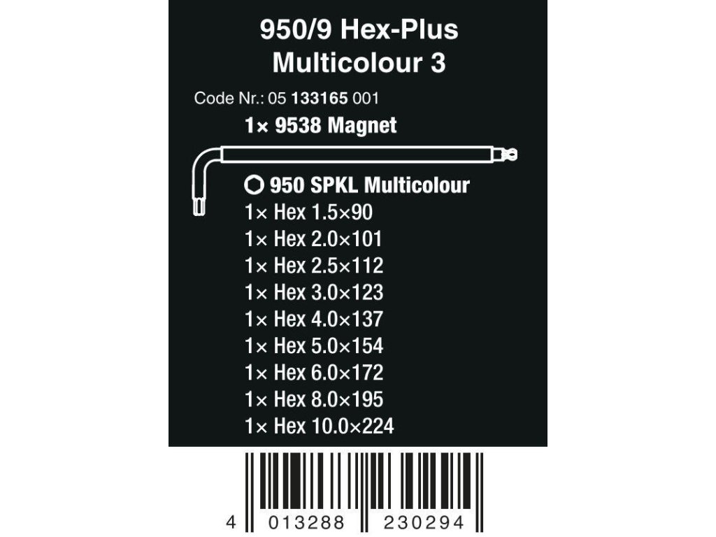 Wera 133165 Zástrčné klíče inbus 950/9 Hex-Plus Multicolour 3, BlackLaser (Sada 9 dílů)