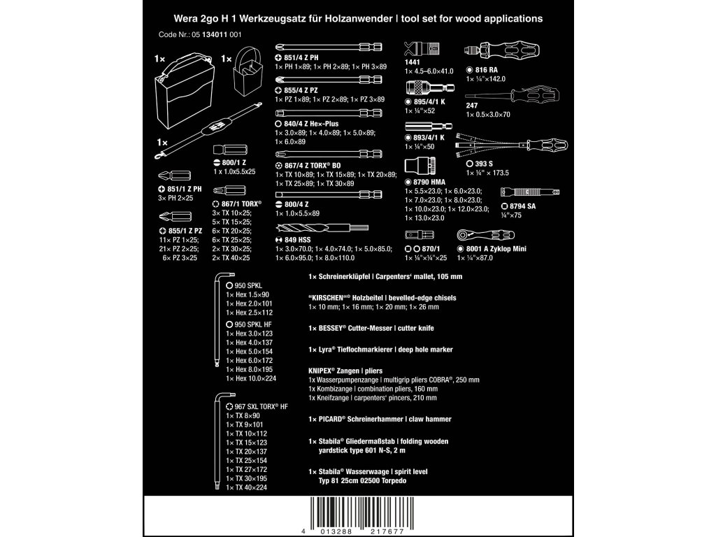 Wera 134011 Nářadí pro zpracovatele dřeva Wera 2go H 1 (Sada 134 nástrojů)