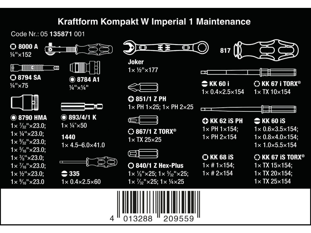 Wera 135871 Nářadí pro údržbu Kraftform Kompakt W Imperial 1, palcové (Sada 35 dílů)