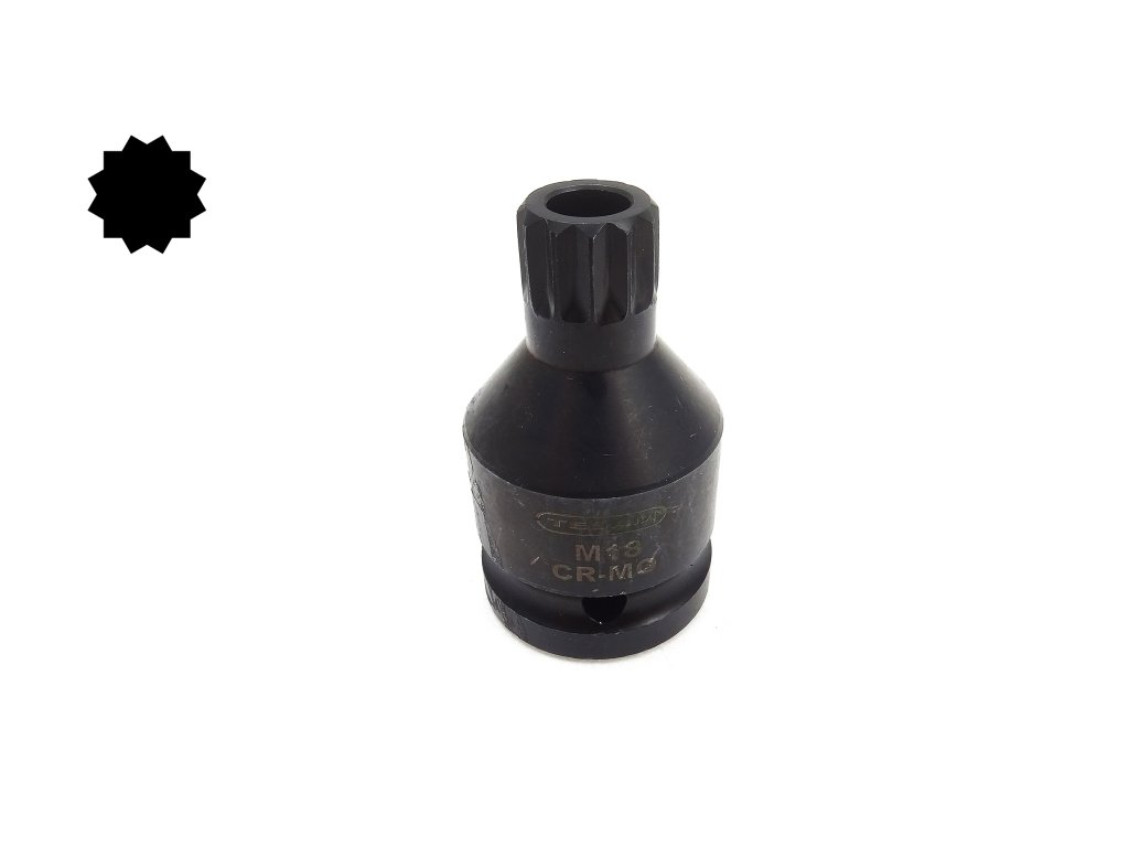 Profesionální úderová hlavice (ořech) na demontáž zadních nábojů z vozů VAG (Škoda, Volkswagen, Audi, Seat), např. modely Octavia 2, Golf, Jetta a mnoho dalších modelů. Kováno z chrom-molybdenové oceli, možno použít i na úderovém nářadí.