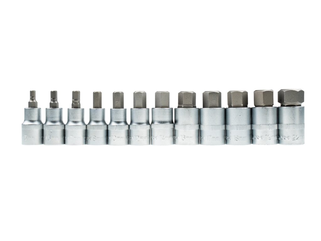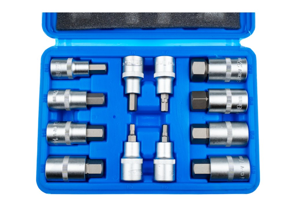 Praktická sada 12 kusů zástrčných hlavic profilu vnitřní Imbus (šestihran) v plastové kazetě.