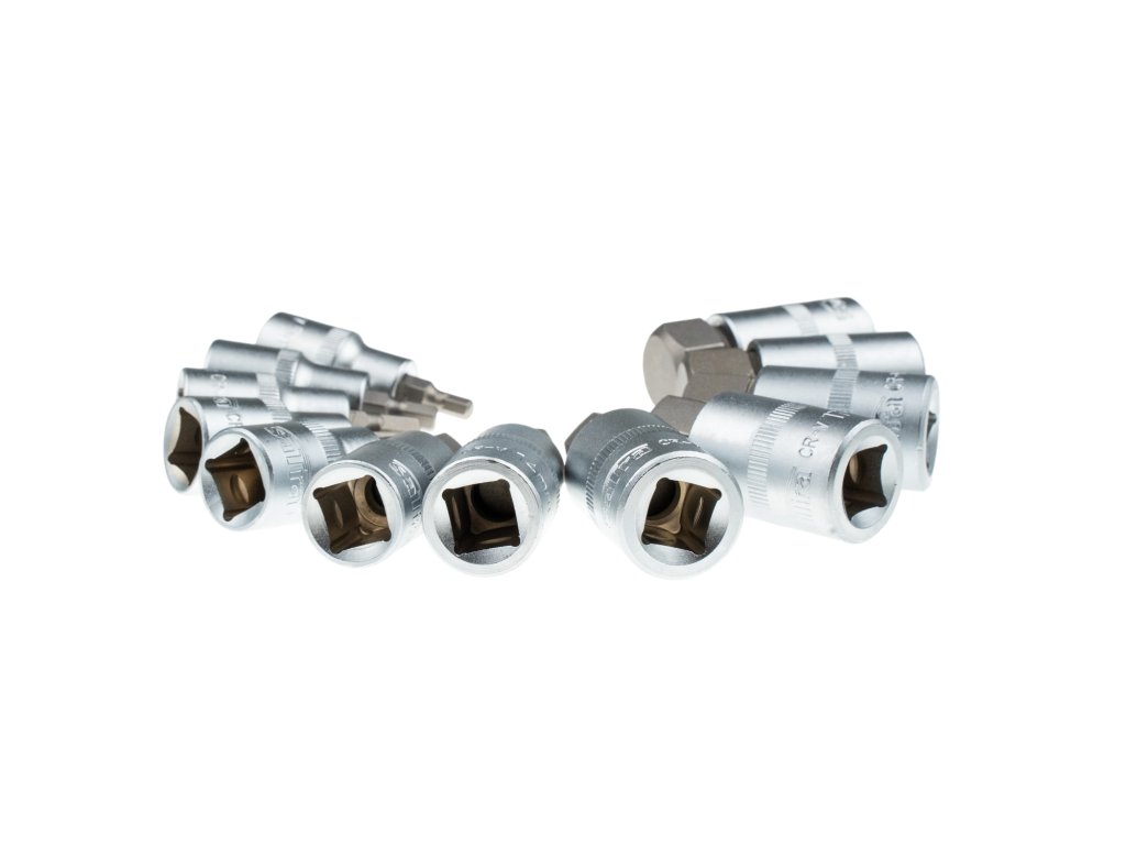 Sada obsahuje zástrčné hlavice H5, H6, H7, H8, H10, H12, H14, H16, H17, H18, H19, H22