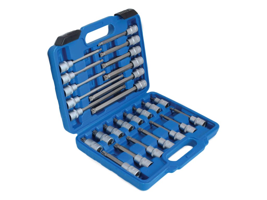 Velká sada zástrčných hlavic formátu XZN (Spline) v několika délkových provedeních.