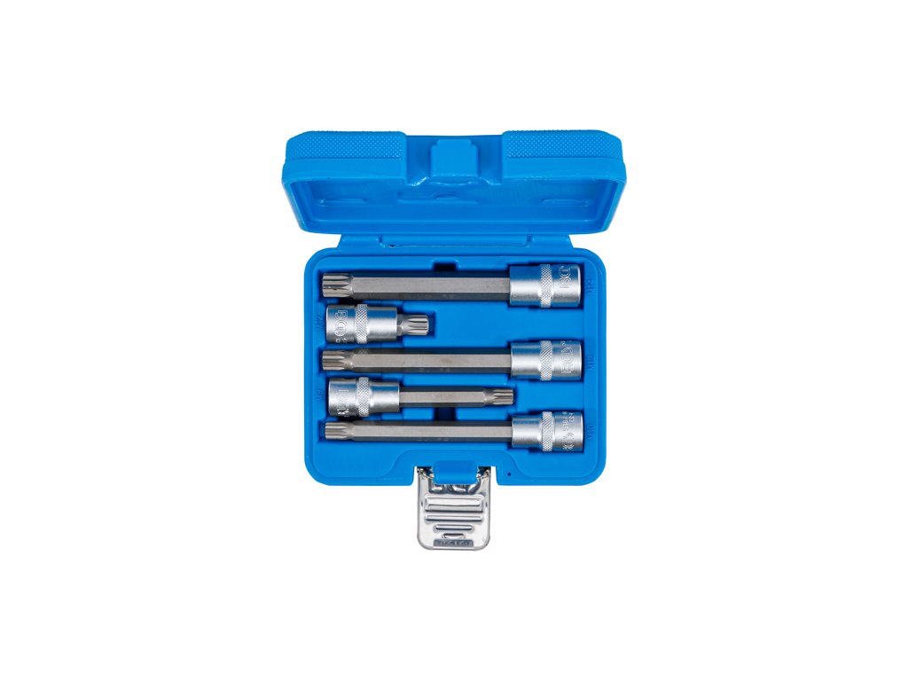 Zástrčné bitové hlavice profilu XZN (tisícihran), vodicí 4hran 1/2“, různé délky, sada 5 dílů v plastové kazetě - BGS technic 8449