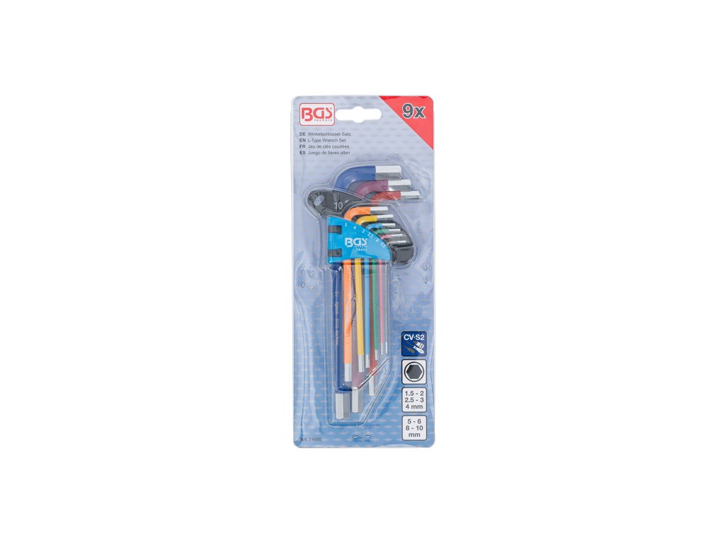 Praktická sada barevných imbusových klíčů, velikosti 1,5-10 mm, sada 9 ks – BGS Technic 74455